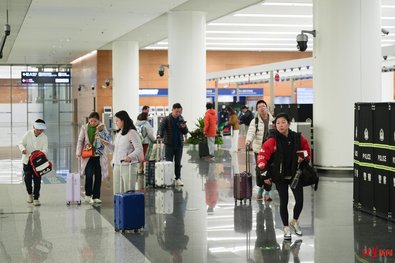 游客们持续走出机场入境通说念