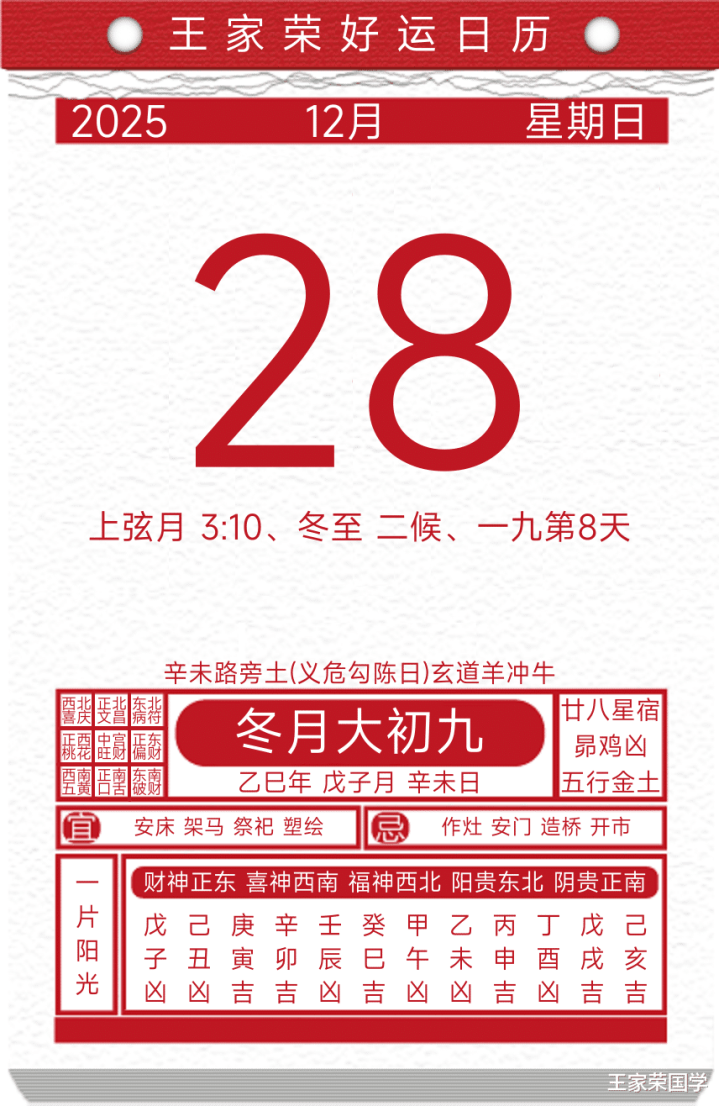 逐日历本福祸宜忌2025年12月28日