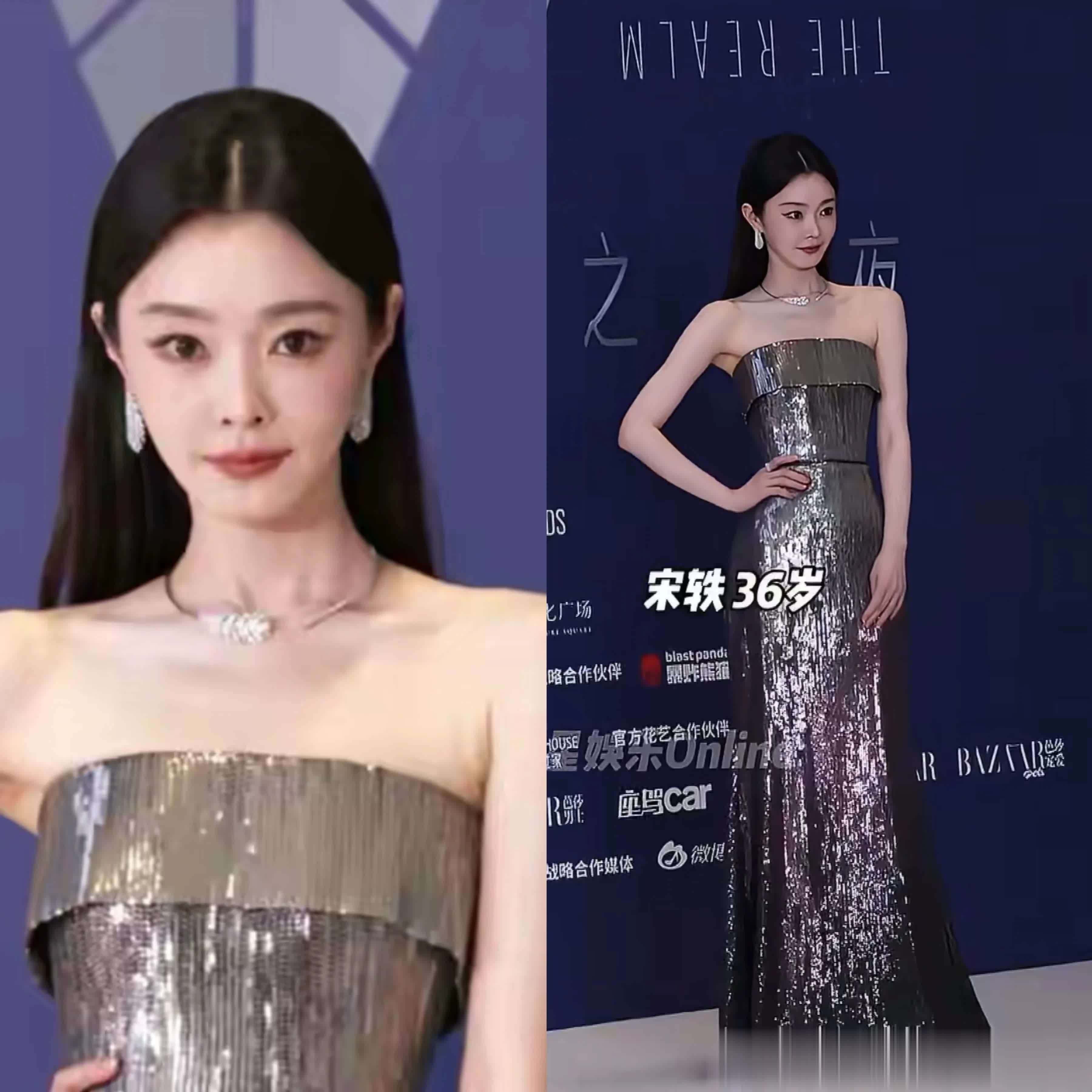 而今晚,身着孤单银色闪片挂脖裙的她,珍视展现出性感魔力。仅仅衣着高开衩裙时,风范颇为贫乏,像她那般“岔开”的站姿,实在不太好意思不雅!