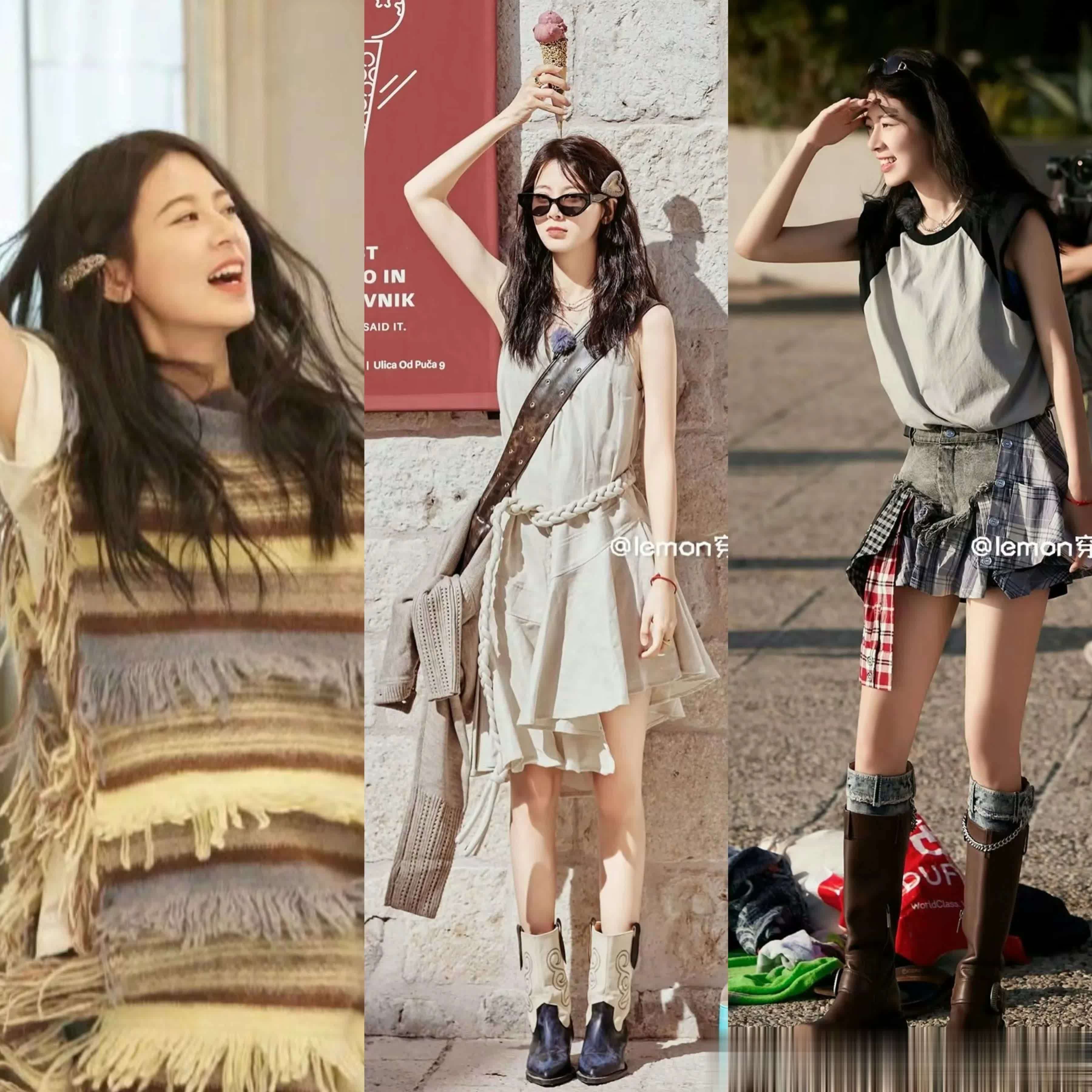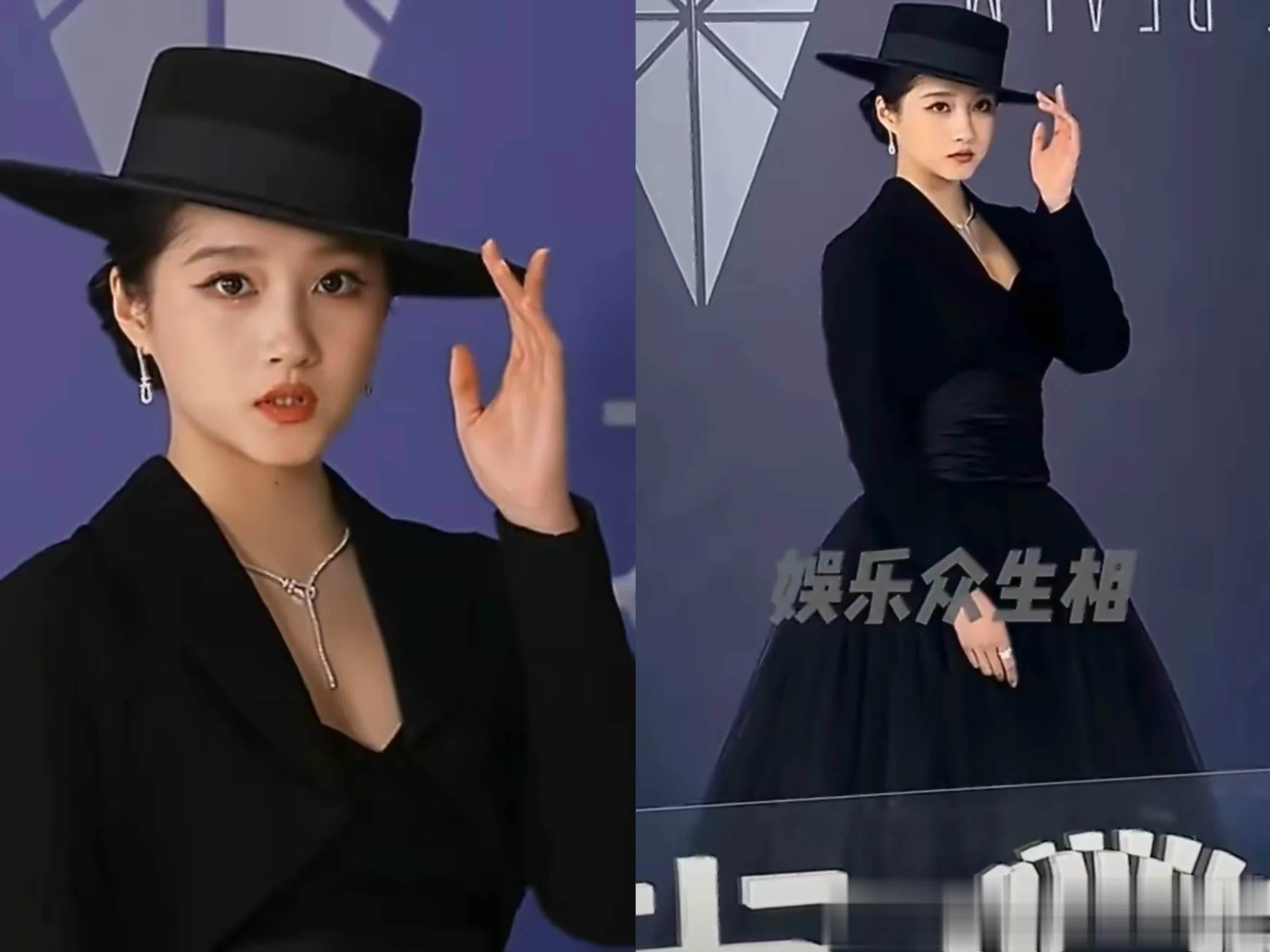 这套衣服让她穿出了小孩子穿大东谈主衣服的嗅觉,且一直扶着帽沿的姿势,显得过于刻意。