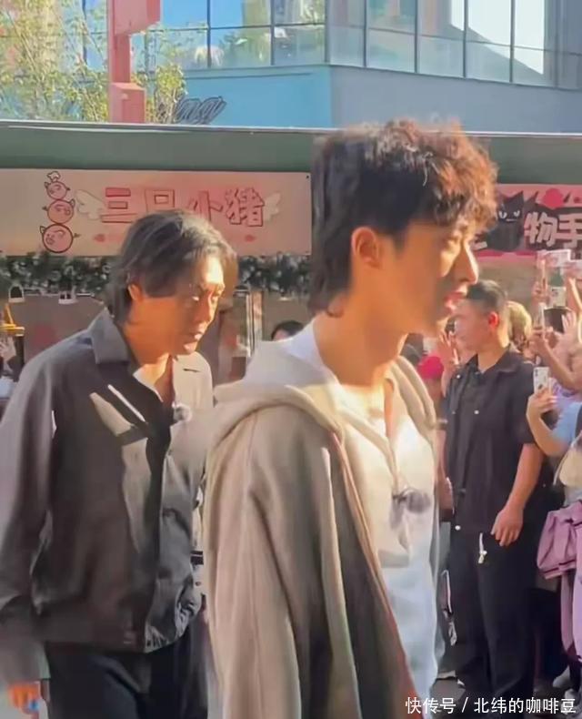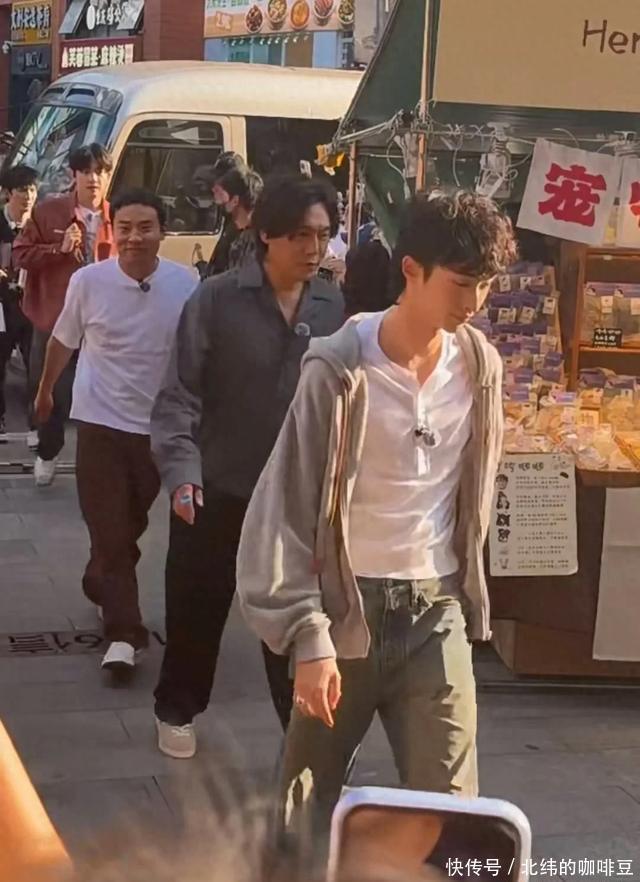 这是现场照,哈利穿戴灰色开衫和牛仔裤,秦昊穿戴灰色衬衫和玄色裤子。哈利走在最前边,秦昊紧跟自后,秦昊后边是徐志胜。他们录制的综艺节目是《欢快趣吹风》。