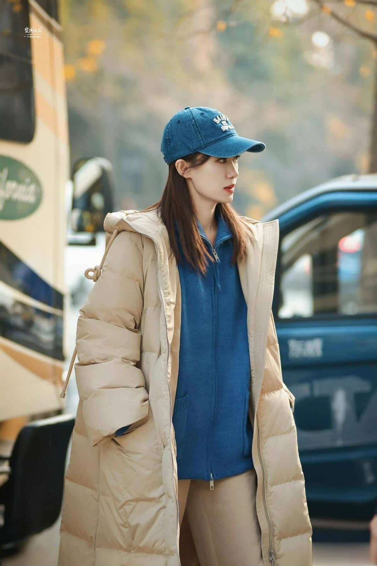 中长款的羽绒服很御寒,张小斐个子高挑,穿上了中长款羽绒服,叠穿蓝色的毛衣,混搭起来的确杰出端淑有端倪感,下半身搭配失业的卫裤,更是杰出先锋。
