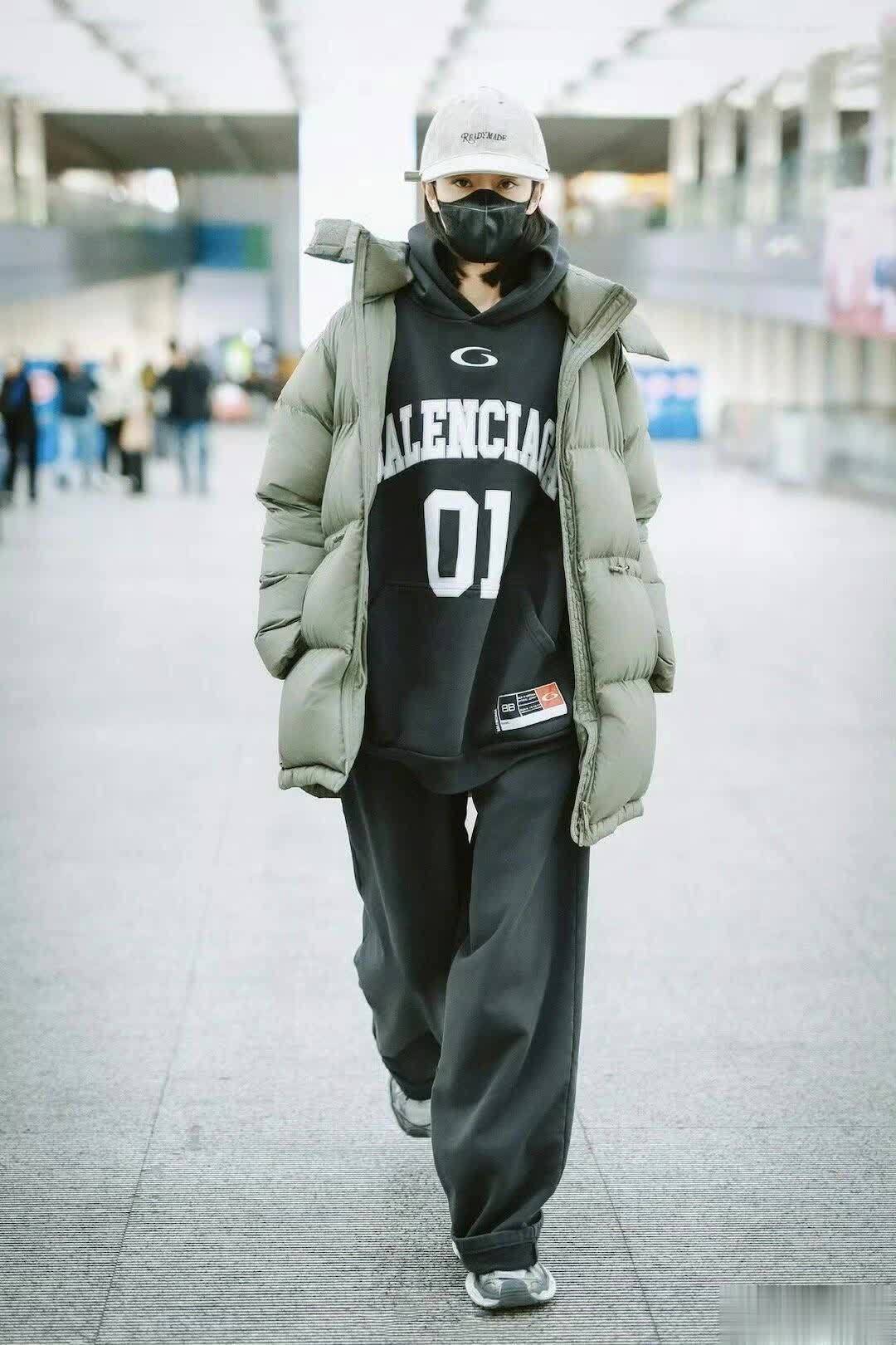 张小斐在内部聘请了卡其色的卫衣,叠穿玄色羽绒服,下半身配着卡其色的失业卫裤,和卫衣或者酿成呼应,这么一套式的搭配看上去愈加简陋利落。