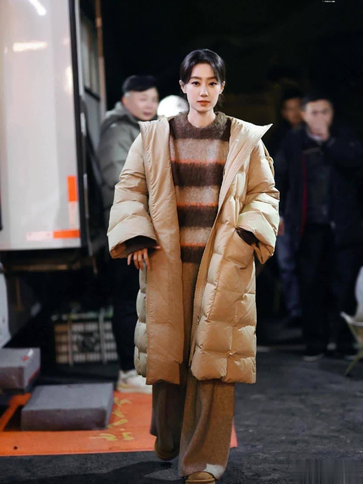张小斐心爱毛衣和羽绒服的组合,比如底下的搭配中,她在羽绒服内部搭配了一件条纹的毛衣,这一款毛衣规画感很强,领有浓浓的相沿感,况兼宽松的毛衣和羽绒服叠穿起来还领有双重御寒的成果。