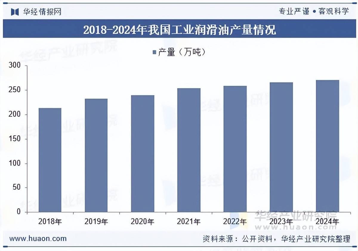 工业润滑油主要用于各类工业机械斥地和工程机械的制造过甚广泛驱动、金属制造及加工、工艺添加过甚他领域,其愚弄领域平凡、用途千般、种类广漠、性能隔离,被形象地称为“工业机械斥地的血液”。跟着我国工业合座发展的加速,行业需求也握住增长,阛阓鸿沟捏续扩大,2024年我国工业润滑油阛阓鸿沟约为455.6亿元,2018-2024年CAGR约为7.24%。